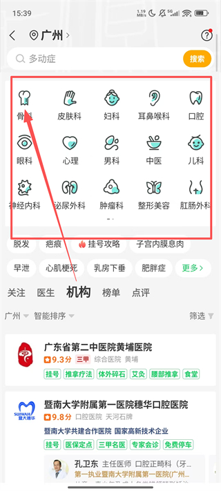 2、在科室选择界面中有多种科室可供选择,如骨科、眼科等,根据自身需求选择科室,进入该科室的挂号页面。