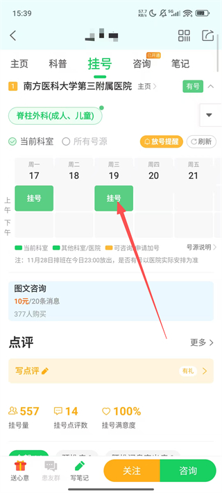 4、选择挂号日期,如周三19号,点击挂号按钮完成挂号操作,获取就医预约,方便按时前往医院就诊。