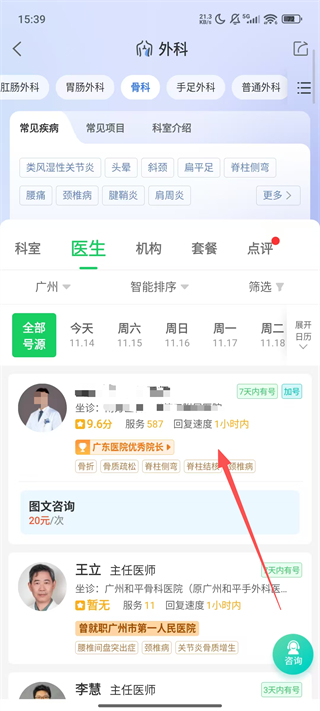 3、进入科室后查看医生信息,包括坐诊时间、评分等,选择合适的医生,了解其擅长领域,为挂号做准备。